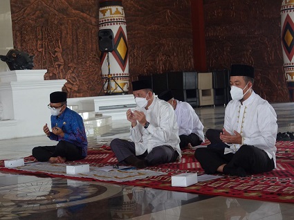 Bupati Musa mengatakan bahwa Pemerintah Daerah tidak dapat bekerja sendiri semua pihak harus berkolaborasi bekerjasama saling meniling untuk menghadapi ujian yang melanda ini yaitu pandemic covid 19 . Oleh karena itu kegiatan doa Bersama ini dilakukan sebagai pelengkap segala usaha yang sudah dilakunan Pemda Lamteng Bersama jajaran TNI/POLRI , para tenaga Kesehatan dan unsur lain untuk memutus mata rantai penyebaran covid 19.