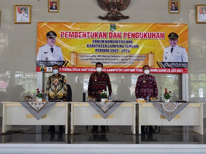 LAMPUNG TENGAH.Bangkitnusantara.com. — Bupati Lampung Tengah Musa Ahmad Mengahadiri acara Pembentukan dan Pengukuhan Forum HRD Kabupaten Lampung Tengah di Sesat Agung Nuwo Balak Kamis 29 Juli 2021. Acara tersebut turut di hadiri Asisten Ekonomi Pembangunan, Kepala Dinas Nakertrans dan Kepala Perangkat Daerah terkait.