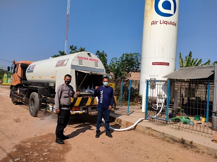 LAMPUNG TENGAH.Bamgkitnusantara.com. — Pengamanan di Vendor Pengisian dan pendistribusian Oksigen Kerumah Sakit Pemerintah dan Swasta oleh Polres Lampung Tengah Bersama TNI Kodim 0411 LT dan Satuan Polisi Pamong Praja Kab Lampung Tengah, Jum’at (30/07/2021).