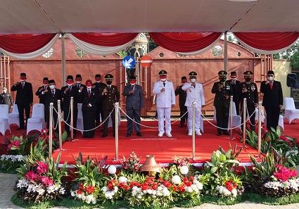 Selaku inspektur upacara Bupati Lampung Tengah Musa Ahmad dengan komandan upacara Ipda Pandu , perwira upacara AKP Zulkifli , pembaca teks proklamasi ketua DPRD Lampung Tengah Sumarsono dan doa oleh Kepala Kemenag Lamteng. Upacara dilakukan dengan prokes yang ketat.
