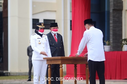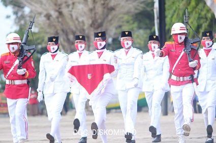 Tulang Bawang – Peringatan hari Kemerdekaan Republik Indonesia di Kabupaten Tulang Bawang dilakukan secara protokol kesehatan yang ketat, bertugas sebagai inspektur upacara komandan distrik militer 0426 Tulang Bawang, Letkol Kaveleri Joko Sunarto, S.sos, M.han. peringatan kemerdekaan ke-76 di Kabupaten Tulang Bawang yang digelar di Lapangan Apel Komplek Pemda setempat, Menggala.