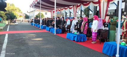 Upacara berlangsung dengan tertib khitmat dengan tetap mematuhi protokol kesehatan .
