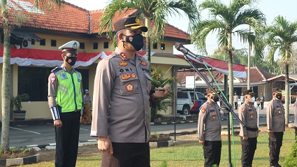 LAMPUNG TENGAH.Bangkitnusantara.com. — Bertempat di lapangan Apel Mapolres Lampung Tengah, Kapolres AKBP Oni Prasetya, S.I.K pimpin apel pagi memberikan arahan kepada PJU, Perwira, Kapolsek jajaran, Brigadir serta ASN. Rabu (18/08/2021)