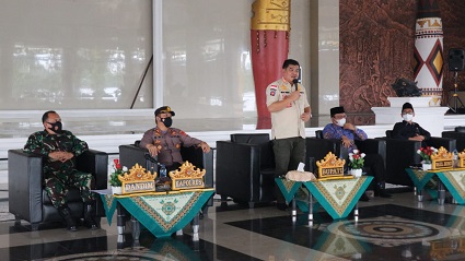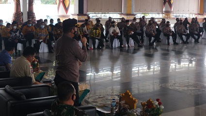 LAMPUNG TENGAH.Bangkitnusantara.com. — Kapolres Lampung Tengah AKBP Oni Prasetya, S.IK menghadiri kegiatan sosialisai surat edaran bersama Forkopimda Kab. Lampung Tengah tentang Pengetatan Kegiatan Sosial Kemasyarakatan atau Hajatan di Lampung Tengah di Gedung Sesat Agung Nuwo Balak Kab. Lampung Tengah, Kamis (19/08/2021).