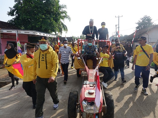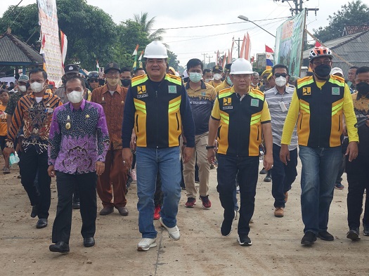 LAMPUNG TENGAH.Bangkitnusantara.com. –Bupati Lampung Tengah Musa Ahmad di sambut warga dengan sorak gembira saat akan meresmikan jalan rigid beton dengan ditandai pengguntingan pita dan penandatanganan prasasti di Kampung Selusuban Kecamatan Seputih Agung yang selama ini diimpikan oleh warga masyarakat akhirnya bisa direalisasikan pada hari Jum’at (4/2/2022)