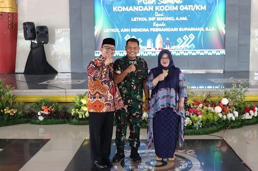 Sementara itu Dandim 0411/KM yang baru Letkol Arh Rendra Febrandari Suparman,S.I.P mangajak seluruh Forkopimda dan Unsur lainnya untuk meneruskan apa yang sudah terjalin baik selama ini dan akan lebih di tingkatkan, dengan Kondisi wilayah Lampung Tengah cukup Luas Untuk menjaga situasi yang aman dan nyaman tidak hanya dari TNI dan Polri namun Peran serta masyarakat sangat amat dibutuhkan ujar Lulusan Akmil 2003 ini pada kesempatan itu juga Letkol Rendra mempunyai Motto dalam bertugas yang sama dengan Motto Lampung Tengah “Beguwai Jejamo Wawai” dimana bersama sama berbuat yang terbaik untuk masyarakat.