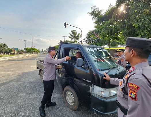 Kegiatan tersebut dipimpin langsung oleh Kasat Binmas, Iptu Wahyono, bersama sejumlah personel. Dengan penuh kehangatan, para petugas membagikan takjil kepada masyarakat yang masih berada dalam perjalanan.