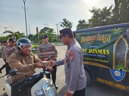 Di tengah suasana bulan suci Ramadhan 1447 H yang penuh berkah, Polres Lampung Tengah di bawah kepemimpinan Kapolres, AKBP Charles Pandapotan Tampubolon, terus menunjukkan kepeduliannya kepada masyarakat dengan rutin membagikan ratusan paket takjil menjelang waktu berbuka puasa.